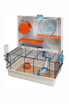 Pokud je váš hlodavec stále v pohybu, rád si hraje a nikdy nezůstává v klidu, pak je pro něj klec pro křečka Olimpia ideální. Toto stanoviště nabízí dostatek prostoru, ve kterém si vaši roztomilí přátelé mohou volně hrát. Jeho konstrukci tvoří klasická drátěná klec a speciální vertikální část pokrytá průhledným plastem, ve které jsou cestičky s kolečkem, domeček, police a žebříky, vše pro rekreaci a cvičení. Ve spodní části klece naleznete také užitečné příslušenství včetně láhve na pití a plastové misky na jídlo.