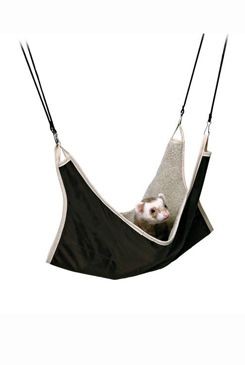 Závěsná houpačka s kožešinou pro fretky.