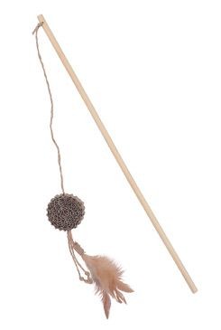 Bambusová udice s kartonovým diskem a pírkem - hračka pro kočky