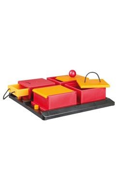Upozornění: V této hře existuje „správně" i „špatně". Každý pes, jako i člověk, jsou individuální a je třeba najít si vlastní řešení. Nechte psa rozhodnout, zda úkol vykoná čenichem nebo packou, zda táhne nebo tlačí díly a v jakém pořadí. To znamená, že Váš pes se může lišit v názoru na následující instrukce, které jsou pouze doporučené jako možnost, jak pracovat jednoduše a smysluplně se psem. Váš pes tudíž může ukázat postupy nebo tendence, které nejsou popsány níže. Všeobecným pravidlem však je, nenechat psa vzít hračku pryč nebo ji rozbít (to je často signálem zklamání nebo nadměrné zátěže).