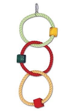 Hračka pro velké papoušky 3 bavlněné kruhy s kostkami