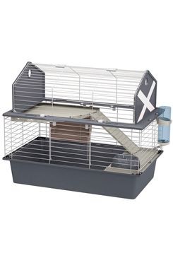 Klec BARN 80 má typický tvar stodoly se zvýšenou střechou a bílými bočními pruhy, které se stýkají do kříže. Tato zábavná klec je určena výhradně pro králíky; velmi prostorná, je dodávána s jídelním žlabem, miskou a napáječkou. Na spodní úrovni je praktický domeček, který je jako stvořený k odpočinku. Nahoru vede sada plastových schodů, kde si váš králíček může užívat pohodlí. Stodola je vyrobena z robustní lakované kovové sítě a lze ji zcela rozebrat. Zabere málo místa a je dodáván se základnou vyrobenou z termoplastické pryskyřice, která zabraňuje vylití. Jeho přední část je opatřena praktickými posuvnými dvířky se zámkem, speciálně navrženými pro bezpečí vašeho mazlíčka.