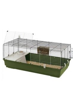Ideální pro králíky a morčata, Rabbit 120 má sytě barevné plastové dno, na kterém je umístěna kovová síťka. Síť je opatřena speciální antikorozní barvou. Přední část je rozdělena na dvě přihrádky, které lze pro snadnější přístup zcela zvednout. To také usnadňuje každodenní čištění. Pro hlubší čištění jednoduše sejměte síťku ze dna vyháknutím zaklapávacích klapek na stranách, navržených pro extra bezpečnost.