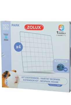Rozšiřující sada k ohrádce NEOLIFE NEOPARK pro morčata. Sada obsahuje 4 mřížkové panely a 8 modrých klipů.