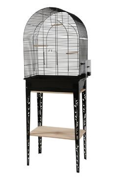 Designová klec pro středně velké ptactvo (andulky, agapornis,...) ve 2 barvách (matná bílá a matná černá) s podstavcem. Nohy podstavce jsou zdobené květinovým motivem.Vybavení klece: