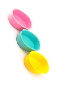 Barevná plastová miska pro malé hlodavce.