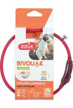 Obojek LED malý BIVOUAK 20-40cm USB červená Zolux