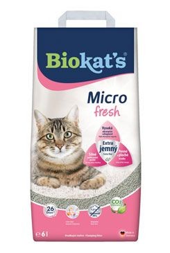 Gimpet Biokat´s Micro Fresh je extrémně savá jílová podestýlka s malinkými plochými granulkami. Ihned při styku s kapalinou hrudkuje, pohlcuje pachy a je velmi šetrná k tlapkám. Nepřichycuje se na srst a je zcela bezprašná. Jeden litr podestýlky Biokat´s Micro Fresh dokáže pojmout až 3 litry tekutiny. Díky této schopnosti je toto stelivo nesmírně ekonomické a vydrží na dlouhou dobu. Drobnější granulky umožňují nasypat do toalety méně steliva cca 3–4 cm. V několika vteřinách váže nepříjemné pachy a tvoří kompaktní a pevné hrudky.