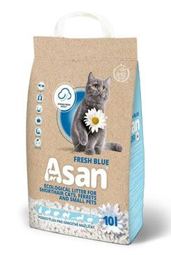 Asan Cat fresh blue - ekologické stelivo pro krátkosrsté kočky, koťata a fretky.- absorbuje vlhkost - povrch steliva zůstává suchý a příjemný pro dotyk tlapek