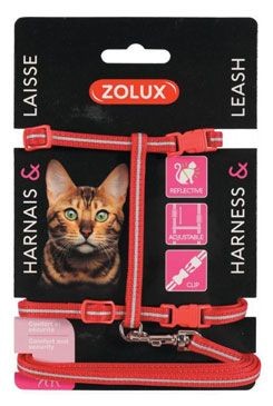Postroj kočka s vodítkem 1,2m červený Zolux