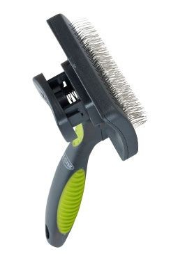 BUSTER samočisticí slicker - Slicker Brush je jemný a účinný víceúčelový pečující nástroj pro odmaštění a odstranění nechtěných vypadávajících chloupků - Zasouvací kolíky vám ušetří drahocenný čas na čištění - Když je podložka plná, uvolněte chloupky stisknutím tlačítka zadní strana vložky - Pro dlouhé/silné/dvojité pláště