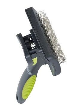BUSTER samočisticí slicker - Slicker Brush je jemný a účinný víceúčelový pečující nástroj pro odmaštění a odstranění nechtěných vypadávajících chloupků - Zasouvací kolíky vám ušetří drahocenný čas na čištění - Když je podložka plná, uvolněte chloupky stisknutím tlačítka zadní strana vložky - Pro dlouhé/silné/dvojité pláště