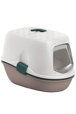 Inovativní a ekonomická krytá toaleta pro kočky. Toaleta se skládá z horního krytu s rukojetí a výklopnými dvířky a ze 2 podnosů a 1 vkládacího síta. Síto umožňuje oddělit nečistoty a opětovně použít čistou podestýlku (výměnou podnosů), čímž se zamezí jakémukoliv vysypávání steliva.
