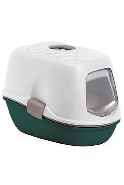 Inovativní a ekonomická krytá toaleta pro kočky. Toaleta se skládá z horního krytu s rukojetí a výklopnými dvířky a ze 2 podnosů a 1 vkládacího síta. Síto umožňuje oddělit nečistoty a opětovně použít čistou podestýlku (výměnou podnosů), čímž se zamezí jakémukoliv vysypávání steliva.