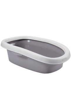 Prostorná otevřená toaleta pro kočky se zesíleným okrajem, který zabraňuje vysypávání podestýlky.