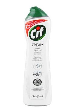 Pořiďte si krémový čisticí prostředek CIF Cream Original, který odstraní i neskutečně velkou špínu. CIF je abrazivní přípravek, který zbaví vaši kuchyň či koupelnu zašlé špíny. Aktivní látky produktu pronikají hluboko do skvrn, čímž odstraní i velkou špínu. Prostředek se hodí také na čištění plastového nábytku, kol nebo obuvi. CIF Cream Original můžete použít na jakékoliv moderní povrchy v domácnosti. Přípravek naneste navlhčenou houbičkou, setřete a omyjte vodou.