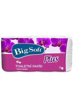 Big soft plus 2vrstvý parfemovaný toaletní papír 7+1 roleToaletní papír je nezbytnou výbavou každé toalety. Pokud drobnosti ovlivňují důležité věci, věřte, že toaletní papír ovlivní opravdu hodně. Bez toaletního papíru na toaletě ztratíte i pracně budovaný dojem z luxusního interiéru.