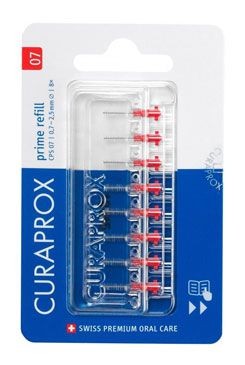 Toto náhradní balení obsahuje 8 mezizubních kartáčků CURAPROX CPS 07 prime, kterými můžete doplnit svůj držák a udržet si tak svou rutinu čištění mezizubních prostor. Jemné kuželovité štětinky jsou šetrné, ale účinné při odstraňování plaku mezi zuby a těsně pod linií dásní v místech, kam se zubní kartáček nedostane.