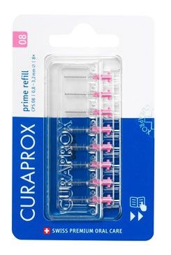 Toto náhradní balení obsahuje 8 mezizubních kartáčků CURAPROX CPS 08 prime, kterými můžete doplnit svůj držák a udržet si tak svou rutinu čištění mezizubních prostor. Jemné kuželovité štětinky jsou šetrné, ale účinné při odstraňování plaku mezi zuby a těsně pod linií dásní v místech, kam se zubní kartáček nedostane.