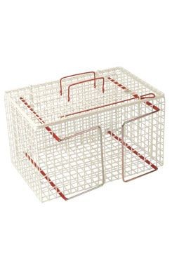 Klec je vyrobena z bílých poplastovaných drátů. Má dvojitou posuvnou stěnu, která umožňuje bezpečné sevření.Rozměry: 54x30x30 cm