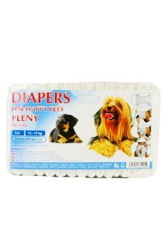 Jednorázová absorbční plena pro psy, zejména štěňata, háravé feny, nemocné psy atp. vhodná na cesty, v domácnosti či pobytu na zahradě, v noci či ve dne. Pleny jsou vyrobeny tak, aby byly pohodlné a nijak nebránili v pohybu. Jemná a měkká povrchová vrstva z netkaného textilu odvádí rychle vlhkost. Mimořádně savý materiál vstřebává rychle tekutinu a vnější folie spolehlivě chrání před prosáknutím. Plena se lehko nasazuje díky upínacím páskům, které jsou upraveny tak, aby se nezachytávaly srst mazlíčka