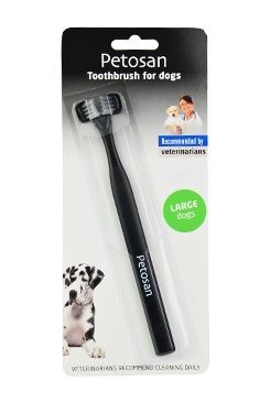 Seznamte svého psa se zubním kartáčkem. Petosan dvouhlavý zubní kartáček vám umožní čistit jedním pohybem vnitřní a vnější plochy zubů současně.
