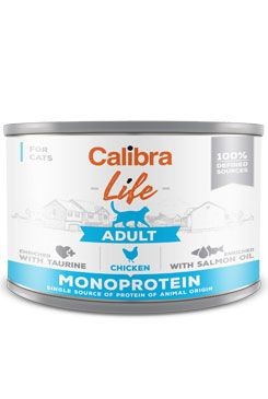 Calibra Cat Life Adult Chicken – receptura konzervy s kuřecím, která je určená pro dospělé kočky.Kompletní vlhké krmivo je založeno na jediném druhu proteinu, receptura je sestavena z limitovaného počtu ingrediencí. Složení konzervy je bezobilninové a bezlepkové, což má vliv na lehkou stravitelnost. Obsahuje jen 100% specifikované suroviny té nejvyšší kvality.