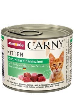 Konzervy Animonda Carny Kitten jsou vyrobeny výhradně z čerstvého masa. Obsahují speciální kombinaci antioxidantů, které chrání imunitní systém koček a posilují jejich obranyschopnost. Animonda Carny Kitten je vyvážené krmivo, které je přizpůsobeno požadavkům rostoucích koťat. Bez barviv a umělých konzervantů. Koťata milují konzervy Animonda CARNY KITTEN.Kompletní krmivo pro koťata