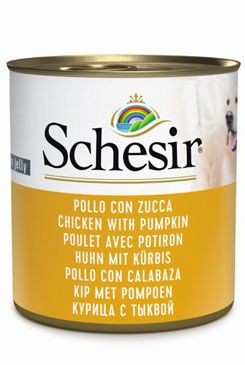 Konzervy Schesir jsou vyrobeny z vysoce kvalitních kousků masa, které jsou ponořeny v lahodném želé. Kousky masa jsou rozdrobeny pro snadný příjem, vždy se ale jedná o kousíčky skutečného masa, nikoli mletého. Konzistence je díky hustému želé měkká a chuť je naprosto neodolatelná. Každý pes si Schesir zcela zamiluje.
