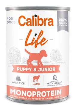 Calibra Dog Life Puppy&Junior Lamb with Rice - receptura konzervy s jehněčím a rýží je kompletním krmivem, které je určené pro štěňata a je vhodná také pro březí nebo kojící feny.Receptura je založena na jediném druhu proteinu, je sestavena z omezeného počtu ingrediencí. Složení konzervy je bezlepkové, obsahuje jen suroviny té nejvyšší kvality, které jsou ze 100% definovaných zdrojů, což spolu s nízkým obsahem rýže má vliv na lehkou stravitelnost.