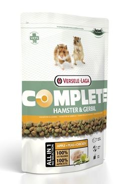 Versele-Laga COMPLETE Hamster & Gerbil 2kg je kompletní a chutné krmivo pro křečky, složené ze 100 % ze snadno stravitelných extrudovaných pelet.Znaky krmiva: V-L COMPLETE Hamster & Gerbil 2kgDental Care (péče o chrup)U křečků a křečíků se mohou občas objevit problémy s chrupem. Obvykle se jedná o přímý důsledek nevhodného krmení, které nedostatečně přispívá k přirozenému obroušení zubů. Tvrdé, křupavé pelety takovéto obroušení umožňují.Fresh Vegetables (čerstvá zelenina)Proces extruze umožňuje přidávat do pelet čerstvou zeleninu. Přídavek nejméně 10 % čerstvé zeleniny zajišťuje lahodnou chuť pelet.Chicken 'n' Fish (kuře a ryba)Živočišné bílkoviny a tuky obsažené v krmivu pocházejí převážně z kuřat a ryb. Kuřata jsou pro svůj vysoký obsah esenciálních aminokyselin nutričně velmi hodnotná a navíc jsou také lehce stravitelná. Ryby jsou zase důležitým zdrojem omega-3 mastných kyselin.High Protein (vysoký obsah bílkovin)Někteří hlodavci, jako např. krečci a křečíci, jsou všežravci. Mají rádi bez rozdílu jak živočišné, tak i rostlinné bílkoviny. Jejich strava musí být relativně bohatá na bílkoviny. Naopak množství tuků musí být co nejnižší.FlorastimulPřidání prebiotik, frukto-oligosacharidů (FOS) a mannan-oligosacharidů (MOS), má pozitivní vliv na zdraví střevní mikroflóry. Tímto způsobem je dosaženo správné rovnováhy a funkce střev.Vitamin Plus (vitamíny navíc)Přidávání důležitých vitamínů do krmiva podporuje celkové zdraví. Vitamín A je nezbytný pro obnovu kožních buněk, zrak, reprodukci a metabolismus. Vitamín D3 stimuluje ukládání vápníku/fosforu a tím podporuje kosti. Vitamíny E a C jsou důležité antioxidanty, které chrání tělo před volnými radikály. Oba také posilují přirozenou obranyschopnost organismu. V krmivech Complete je používána stabilizovaná forma vitamínu C. Na rozdíl od krystalické formy podléhá stabilizovaný vitamín C mnohem pomaleji oxidaci a biologickému rozkladu a proto zůstává daleko déle aktivní.Pro Immunity (lepší imunita)Přidání přírodních rostlinných barviv, luteinu a β-karotenu, má pozitivní vliv na celkovou obranyschopnost a kondici. Tyto karotenoidy jsou známy jako vysoce účinné biologické antioxidanty. Navíc však stimulují tvorbu protilátek proti chorobám, čímž posilují přirozenou obranyschopnost organismu.Optimal Coat (optimální srst)Omega-3 a omega-6 mastné kyseliny v krmivech řady Complete podporují zdravější kůži a lesklejší srst. Omega-3 mastné kyseliny jsou obsaženy díky přidanému lnu, omega-6 díky přidaným rostlinným olejům. Takto je dosaženo optimálního poměru omega-3 / omega-6 mastných kyselin.Anti Hairball (proti smotkům)Díky užití specifické přírodní vlákniny je sníženo riziko vzniku chlupových smotků v žaludku a v trávícím systému na minimum.Odour Control (kontrola pachu)Všechna krmiva řady Complete obsahují extrakt z juky. Ten váže amoniak a další složky odpovědné za pachy linoucí se z výkalů. Nepříjemné pachy jsou tak výrazně redukovány.