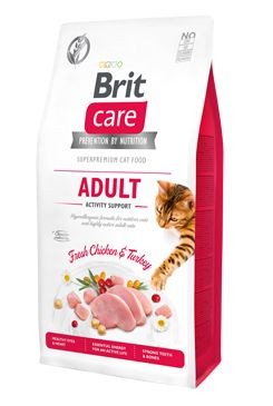 BRIT CARE CAT GRAIN-FREE ADULT ACTIVITY SUPPORT. HYPOALERGENNÍ RECEPTURA "ČERSTVÉ KUŘE & KRŮTA".Kompletní krmivo pro kočky žijící venku a dospělé kočky s velkou aktivitou.