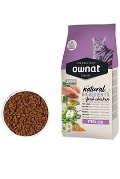 OWNAT CLASSIC CAT Sterilized je krmivo určené pro sterilizované kočky, které mají nižší energetické nároky a větší sklon k přibírání na váze. Toto krmivo obsahuje nižší podíl tuku a je bohaté na kvalitní bílkoviny z kuřecího masa, které pomáhají udržovat zdravou svalovou hmotu. Přidané brusinky podporují zdraví močového ústrojí, což je častá potřeba sterilizovaných koček.