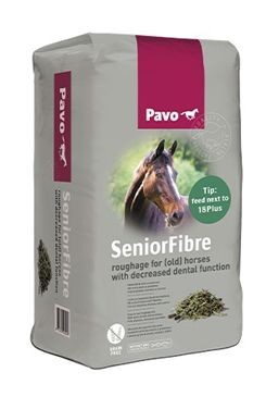 Vláknina je nejdůležitější živinou, kterou kůň přijímá. Bez vlákniny koně nemohou přežít. Z těchto důvodů je nesmírně důležité poskytnout vašemu koni vlákninu, a to i tehdy, když není schopen konzumovat normální zdroje vlákniny, jako je seno nebo senáž. Pavo SeniorFibre umožňuje těmto koním, kteří (dočasně) nemohou konzumovat objemné krmivo (vlákninu), stále přijímat nejdůležitější živiny a zůstat v dobré kondici.