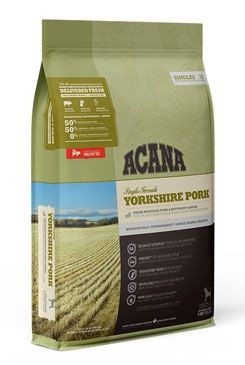KOMPLETNÍ KRMIVO PRO PSY VŠECH PLEMEN A VŠECH VĚKOVÝCH KATEGORIÍKRMIVO S JEDINÝM ZDROJEM ŽIVOCIŠNÉHO PROTEINU ACANA YORKSHIRE PORK OBSAHUJE 50% YORKSHIRSKÉHO VEPŘOVÉHO, KTERÉ JE NÁM DODÁVANÉ ČERSTVÉ V PODÍLU CELÉ KOŘISTI. DÍKY VÝTAŽKU Z MRAZEM SUŠENÝCH JATER CHUTNÁ I VYBÍRAVÝM JEDLÍKŮM. ČERSTVÉ DÝNĚ A MÁSLOVÉ DÝNĚ POSKYTUJÍ ROZPUSTNOU VLÁKNINU, COŽ PROSPÍVÁ PSŮM S CITLIVÝM ZAŽÍVÁNÍM.