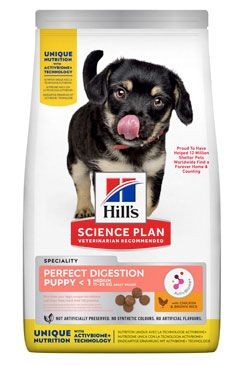 Hill's Science Plan PERFECT DIGESTION krmivo pro štěňata středních plemen s kuřetem a hnědou rýží obsahuje ActivBiome+, což je exkluzivní směs prebiotik společnosti Hill's, která vyživuje unikátní střevní mikrobiom vašeho psa a pomáhá mu dosáhnout jeho plného potenciálu.