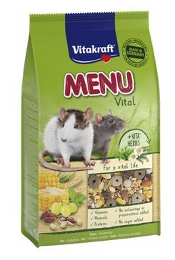 Kompletní krmivo Vitakraft Vital zajistí vašemu potkanovi správnou výživu. Receptura bez cukru přispívá ke zdravému a vyváženému stravování. Vydatné obilí, ovoce, zelenina a chutné oříšky přesně odpovídají potřebám potkanů.
