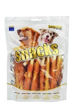 Měkká, přírodní masová pochoutka pro psy.Tyčka z hovězí kůže obtočená plátkem lahodného kuřecího masa.