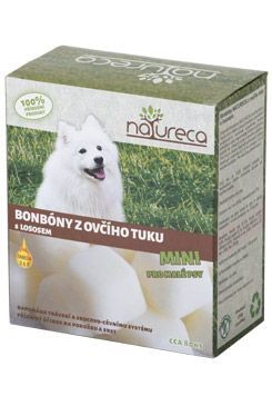 Originální bonbony z ovčího tuku s lososovým olejem NATURECA jsou přírodním produktem podporujícím odolnost organismu, kvalitu pokožky a srsti, napomáhají trávení a příznivě působí na činnost srdce a kardiovaskulárního systému. Ovčí tuk je chutný doplněk každodenní stravy obsahující vitamíny A, D, E, K a omega 3, 6 a 9 mastné kyseliny.