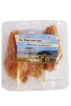Kuřecí filety na tyčce z buvolí kůže - žvýkací pochoutka pro psy a kočky všech plemen.