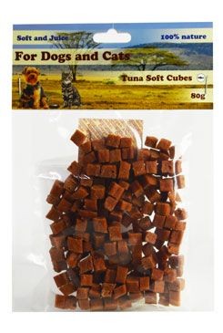 Popis: měkké kostky z tuňákového masa. Pro psy a kočky.Složení: tuňák 100%