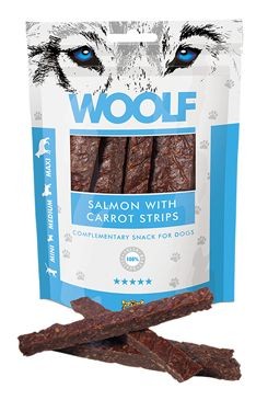 Proužky z lososa s mrkví jsou lehce stravitelný pamlsek ve formě dlouhých proužků, které si dle potřeby můžete nalámat, nebo nechat vašeho psa, aby si dlouhý pamlsek postupně okusoval a žvýkal. Pamlsek je vhodný pro citlivější psy. Pochoutky Woolfsnacks jsou speciálně navrženy pro psy všech plemen. Při výrobě jsou ze 100% použity bílkoviny té nejvyšší kvality pro co nejlepší příjem potravy. Veškeré pochoutky Woolfsnacks, jakmile se vyrobí, jsou zabaleny bez chemických přísad, konzervačních látek, nebo barviv. K zajištění ochrany je do sáčku umístěn absorbér kyslíku.