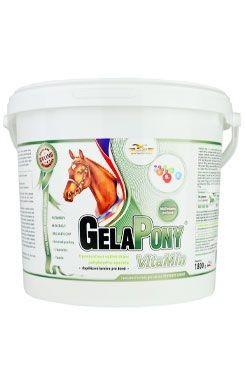 GELAPONY VITAMÍN - VITAMÍNOMINERÁLNÍ DOPLNĚK S KOLAGENEMKomplexní doplňkové krmivo s obsahem kolagenu CHP, vitamínů a minerálů k dennímu obohacení krmné dávky všech kategorií koní Gelapony VitaMín je komplexní vitaminominerální doplněk s kolagenem CHP. Přípravek je určen k dennímu doplnění vitamínů a minerálních látek do krmné dávky koní. Současně zajišťuje příjem kolagenu CHP pro správný vývoj a regeneraci kloubů, kostí a šlach.