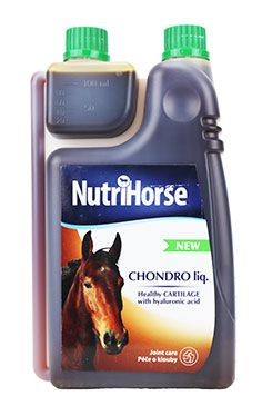 CHONDRO liq. je tekutý doplněk stravy pro podporu zdraví chrupavek a správné produkce synoviální tekutiny. Doplněk je určen na podporu regenerace a výstavby kloubních chrupavek a pouzder, vazů, šlach a pojivových tkání koní. Hlavními účinnými látkami jsou chondroitin sulfát, glukosamin, MSM a kyselina hyaluronová. Jejich kombinace podporuje správnou funkci pohybového aparátu koní, zvláště kloubů. Látky se lehce vstřebávají a zabudovávají do nově vzniklé nebo regenerující chrupavky, zvyšují hydrataci a elasticitu chrupavky a posilují její mechanickou odolnost. Přípravek je vhodný zejména pro parkurové koně, u kterých je jejich pohybový aparát zatěžován nejvíce. Preventivně se doporučuje podávat sportovním, dostihovým a starším koním k posílení a zlepšení celkové mobility.
