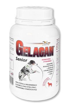 Gelacan® Senior je veterinární přípravek - nutraceutikum s bioaktivními kolagenními peptidy a bylinnými extrakty pro výživu a regeneraci pohybového aparátu a pro celkové posílení a vitalizaci organismu psů.