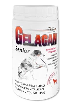 Gelacan® Senior je veterinární přípravek - nutraceutikum s bioaktivními kolagenními peptidy a bylinnými extrakty pro výživu a regeneraci pohybového aparátu a pro celkové posílení a vitalizaci organismu psů.