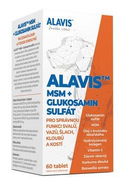 ALAVIS™ MSM + Glukosamin sulfát je osvědčenou kombinací látky MSM a Glukosamin sulfátu pro správnou funkci vazů, šlach, kloubů a kostí. Doporučuje se u štěňat a mladých psů pro správný vývoj pohybového aparátu a dále u psů každého věku při nemocech kloubů, kostí a svalových úponů a pro jejich prevenci. Jedinečná kompozice tohoto přípravku vykazuje výrazný účinek proti bolesti a zánětu. Protizánětlivý účinek látky MSM je výrazně podpořen olejem z brutnáku lékařského, boswelií, kurkumou a zázvorem.