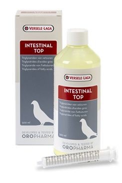 Specifické esterifikované mastné kyseliny.Intestinal Top je vědecky formulovaný doplněk stravy na bázi esterifikovaných mastných kyselin se středně dlouhým řetězcem. Ideální kombinace kyseliny máselné, kyseliny kaprylové, kyseliny kaprinové a kyseliny laurové, esterifikované pro dobrou absorpci. Zajišťuje optimální střevní prostředí, čímž brání růstu škodlivých mikroorganismů. Každodenní podávání přispívá k dobré činnosti střev a zvyšuje odolnost proti zažívacím potížím (včetně mladých holubů).