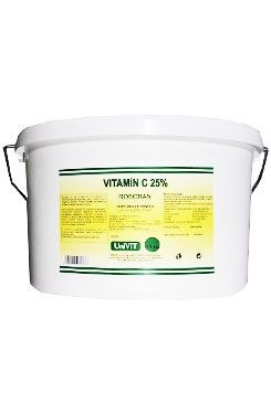 Vitamin C je důležitým činidlem v obraně proti infekcím jak u mláďat, tak u dospělých jedinců všech druhů zvířat. Působí příznivě na rezisteci kapilár a srážlivost krve.Vhodný pro prevenci a terapii infekčních onemocnění, stresových a krvácivých stavů zvířat a příznivému ovlivnění snášky u drůbeže. Podává se s krmivem nebo v pitné vodě.