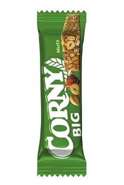 CORNY BIG cereální tyčinka lískový oříšek. CORNY BIG s lískovými oříšky je oblíbená cereální tyčinka, která tě jistě zasytí. Ideální jako svačina mezi jídly nebo když tě honí mlsná. Obsahuje celozrnné cereální vločky a křupinky doplněné porcí pečlivě pražených lískových oříšků. Pro milovníky lískových oříšků: kombinace vynikajících cereálií a pražených oříšků, která tě ohromí.